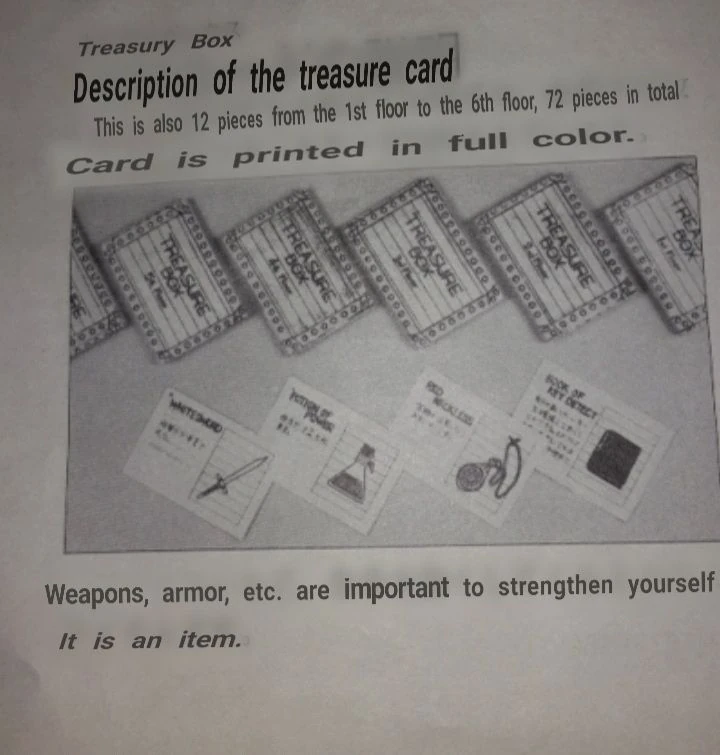 Description of the treasure cards