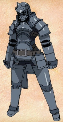 Utu (ウトゥ) is a character from the anime The Tower of Druaga: The Aegis of Uruk and The Tower of Druaga: The Sword of Uruk. Utu is a warrior encased in armor and he is the main attacker of the group, wielding a battle axe. While the mask of his helm has been lifted twice so far in the series, it has always been at an angle that denies the audience the chance to see his face, thus leaving his appearance and age unknown.